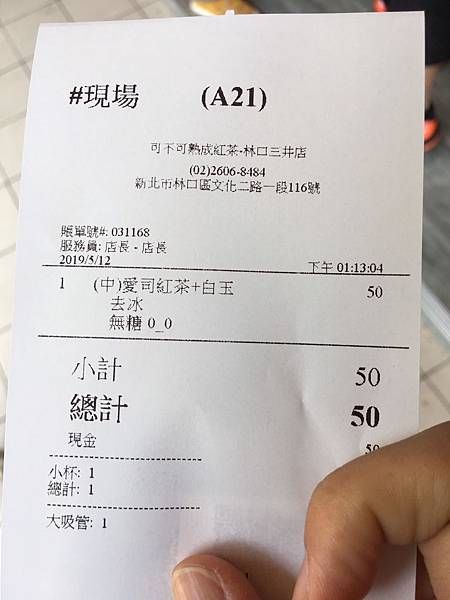 5/13更新 ─ 今天點了愛司紅茶大杯、去冰(有小碎冰)、1分糖,不加白玉珍珠!