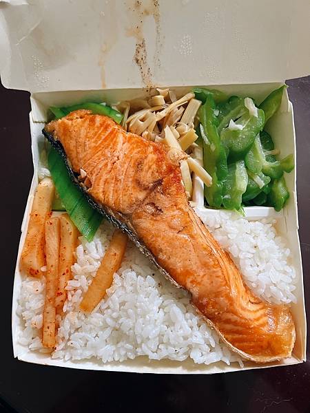 像照片中的這個便當之中就有炒菜瓜、炒苦瓜和筍干。炒菜瓜、苦瓜不會過度油膩,鹹度也很剛好,吃起來非常順口。由其是苦瓜,其實我蠻討厭吃苦瓜的,但這份吃起來出乎意料的不僅不苦,口感清脆差點誤人為是青椒。之前有吃過龍鬚菜、高麗菜,對於愛吃青菜的我來說,非常合我味口!